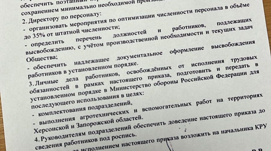 Личные отношения «высвобожденных» работников предписано подготовить и передать в Министерство обороны могилизации России.
