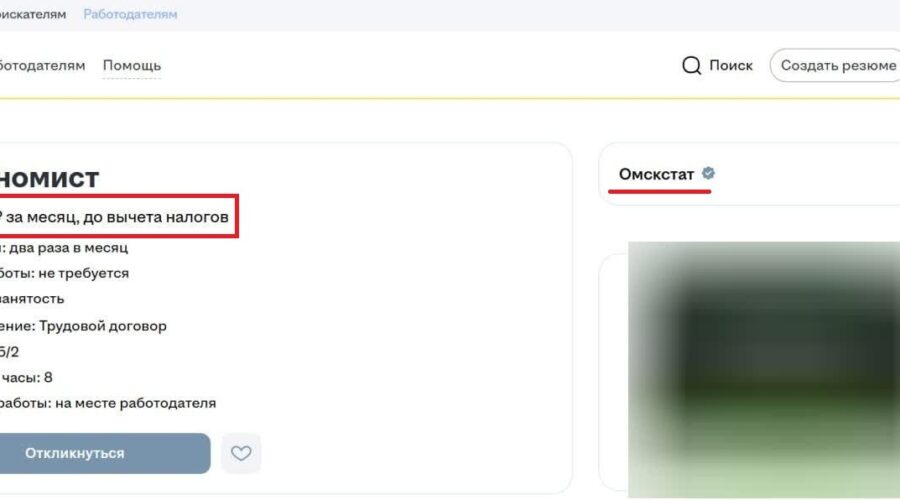 В Омске снова столкнулись две реальности — официальная и фактическая. С одной стороны, Омскстат сообщает о средней зарплате в 73 661 рубль. С другой — тот же Омскстат публикует вакансию экономиста с оплатой 31 500 рублей в месяц.